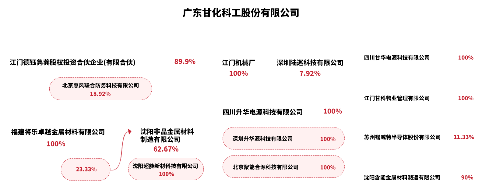至今,甘化科工擁有三大核心業(yè)務板塊,四家控股子公司,涉及電源電子、光電成像與特種材料領域,同時以參股形式對相關行業(yè)內多家擁有先進技術及發(fā)展前景的企業(yè)進行投資與孵化,包括半導體、特種電源、車載電源、導引頭等,形成了以軍工產業(yè)為基礎,拓展多領域協(xié)同發(fā)展,持續(xù)推動技術創(chuàng)新與產業(yè)升級,在行業(yè)內樹立了良好的發(fā)展標桿。